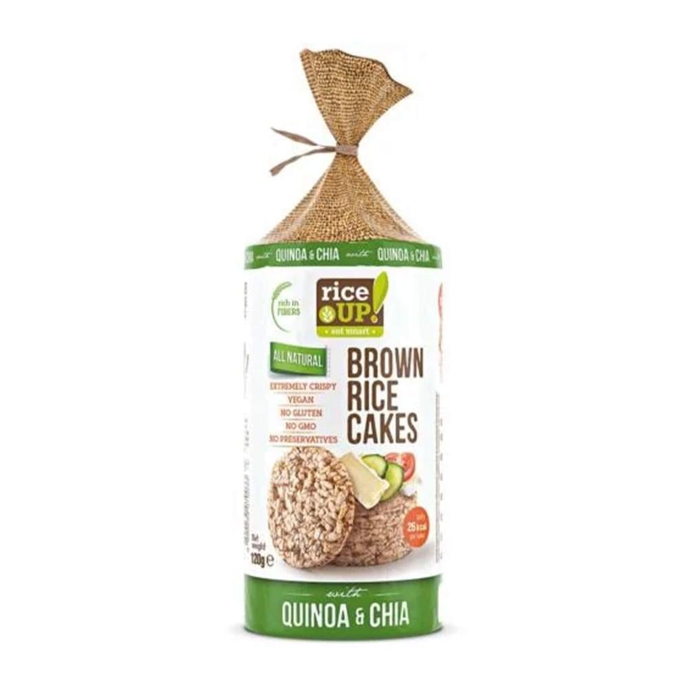 رايس أب كعك الأرز البني 120 جم بنكهات مختلفة مصنوع من حبوب الأرز البني الكاملة وأرز إمبريال، وهو خالٍ تمامًا من الكوليسترول، الجلوتين، القمح، الصويا، والمواد الحافظة – ما يجعله مناسبًا لكل من يتبع نظامًا غذائيًا نباتيًا أو يعاني من حساسية تجاه مكونات معينة.