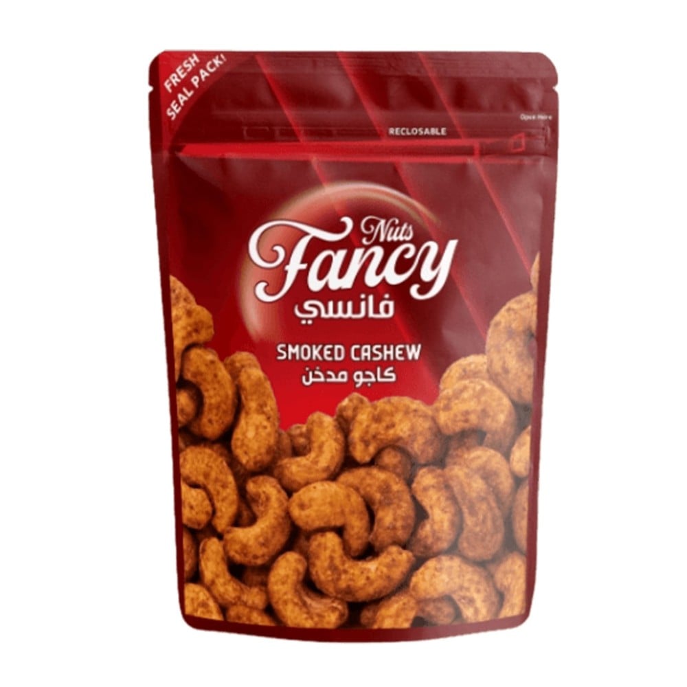 كاجو ، ملح ، نكهة مدخن ، محسنات النكهة (غلوتامات احادية الصوديوم ، اينوسينات ثنائي الصوديوم ) ، مالتوديكسترين ، ثاني اكسيد السيليكون ، عوامل التلوين ، سكر ، خلاصة البابريكا ، حامض الليمون ( منظم الحموضة)